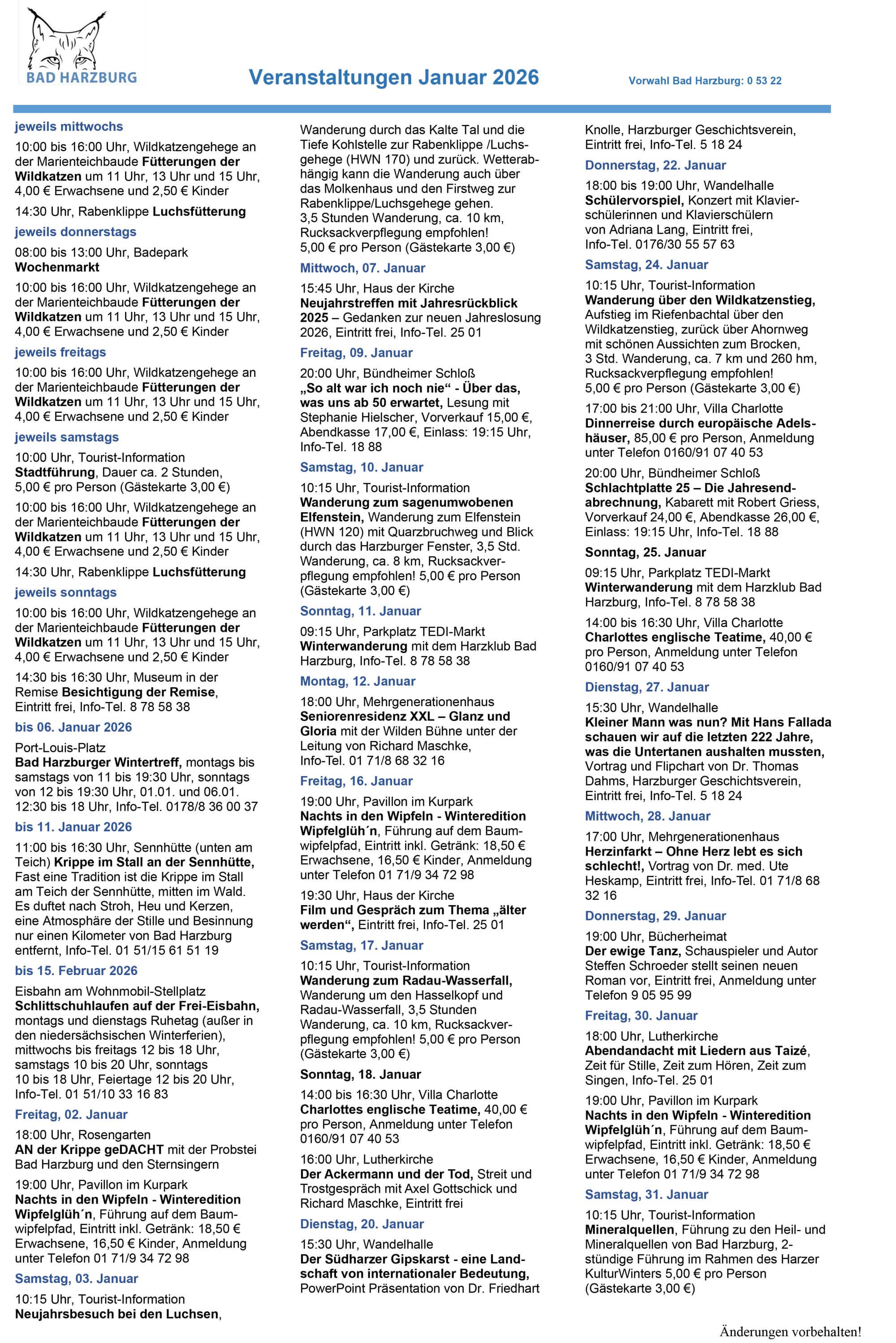 Veranstaltungen im Januar in Bad Harzburg