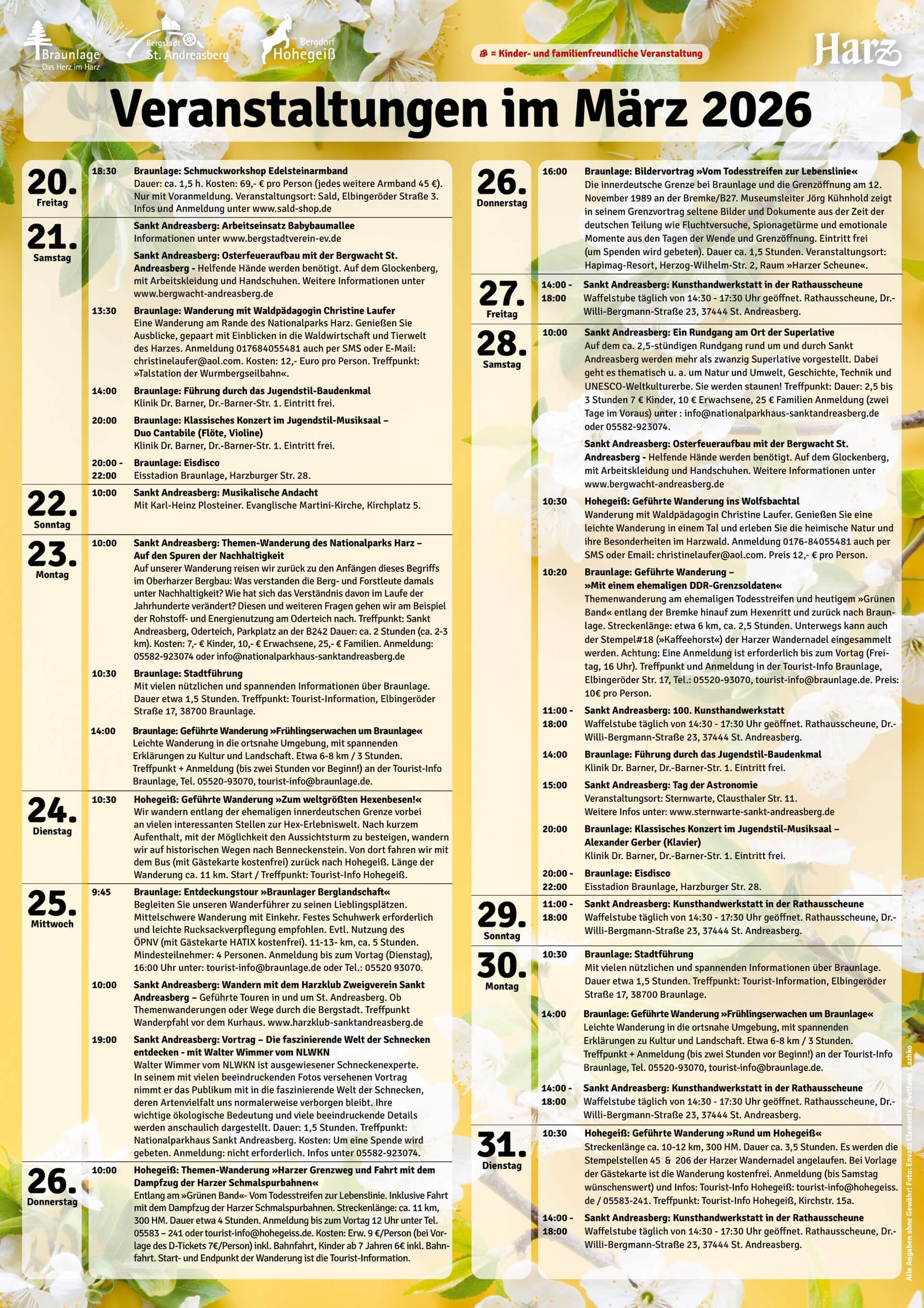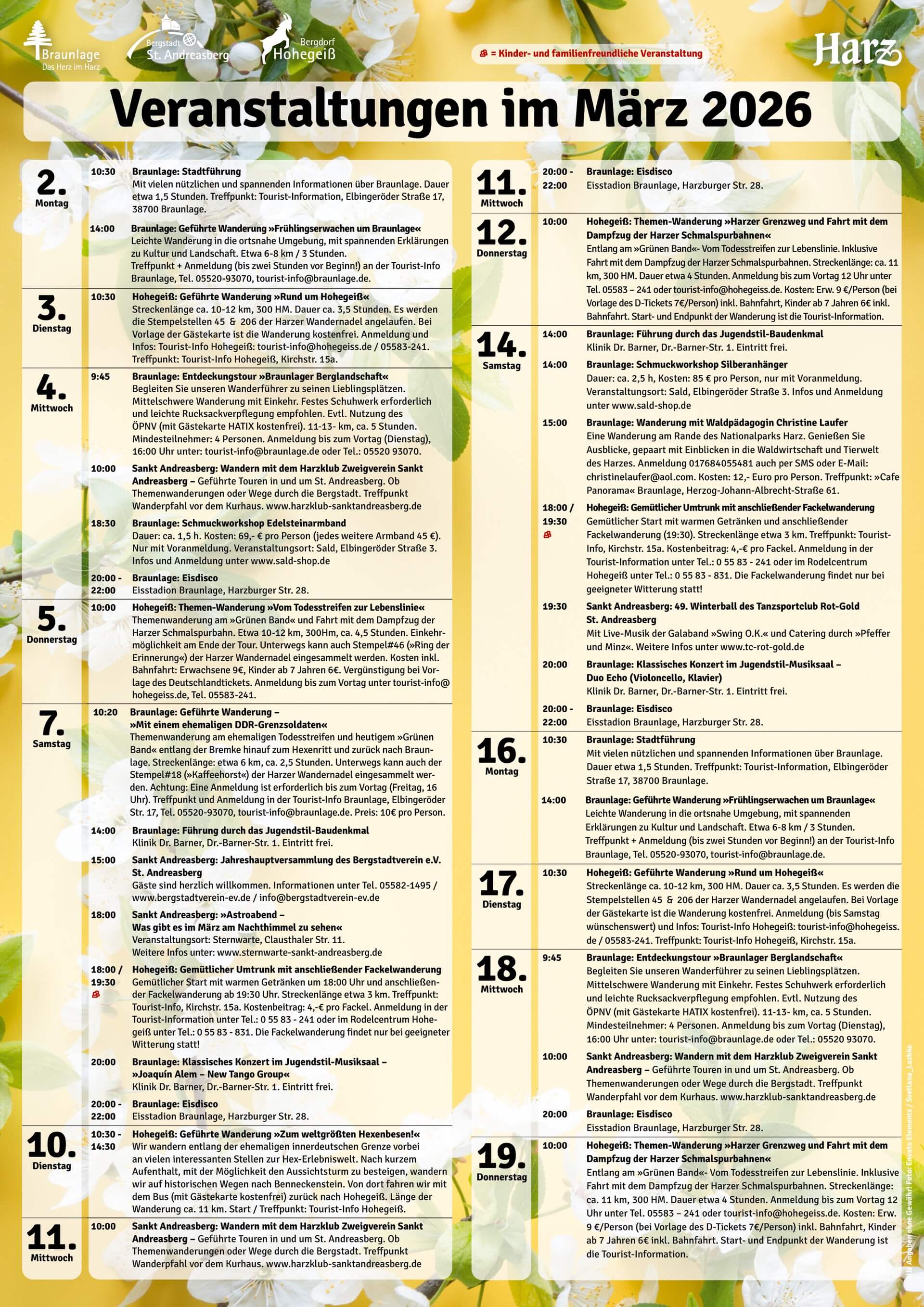 Veranstaltungen im März in Braunlage, St. Andreasberg & Hohegeiß