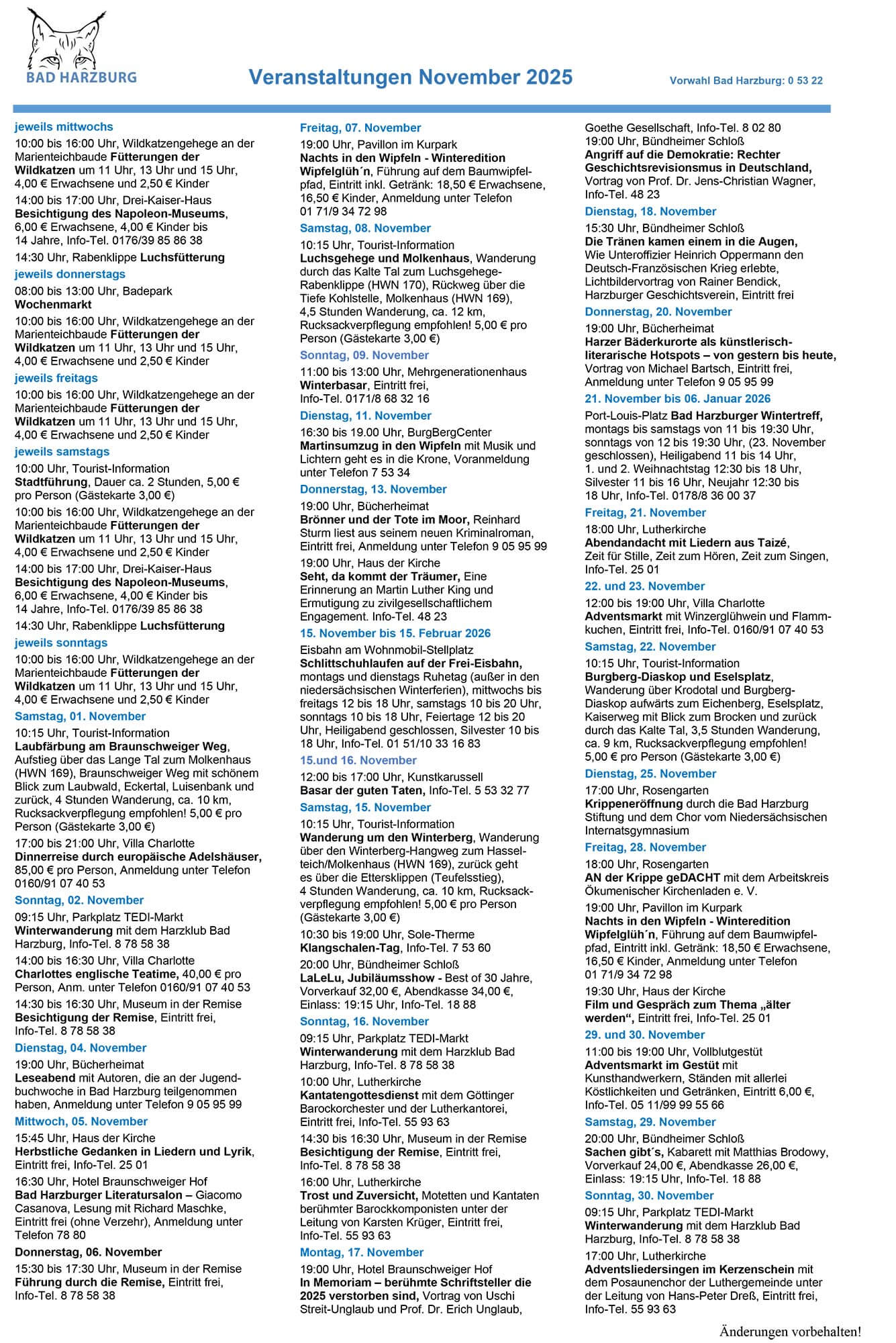 Veranstaltungen im November in Bad Harzburg